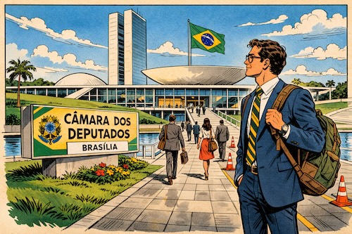 Além disso, havia também a influência da própria cultura da cidade. Então eu e meu irmão fomos fazer esse concurso, assim como vários conhecidos. Alguns deles eu já sabia que fariam a prova; outros eu encontrei lá mesmo no dia. No final, eu acabei sendo aprovado no concurso da Câmara dos Deputados. A partir daí veio a decisão: eu realmente queria fazer essa mudança? Pensei um pouco, conversei com alguns colegas que já trabalhavam lá e acabei decidindo que tomaria posse assim que fosse chamado.