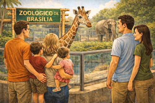 Dessa vez, fomos em família. Nossos amigos nos receberam, nos levaram para conhecer a cidade, passeamos com as crianças, fomos ao zoológico. Passamos um feriado prolongado em Brasília. No último dia, enquanto nos preparávamos para voltar, a Gisele me perguntou: “Vamos mudar para cá?”. Eu falei assim: “Como? A gente não tem emprego aqui. Não tem nada.” Na época ela estava querendo mudar de emprego e a resposta dela foi: “Mas isso aí a gente arruma.” A minha reação foi: “Tá, se a gente arrumar um emprego pagando bem aqui a gente pode pensar em mudar.” A gente conversou a respeito e nos pareceu que era um bom lugar pra viver com os filhos, pra crianças crescerem.