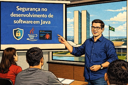Logo que eu cheguei, ainda não estava alocado em nenhum projeto específico, então acabei tendo algum tempo livre. Eu estava no processo de montar o curso de segurança em desenvolvimento que mencionei no capítulo “AppSec Brasil 2009”. Mostrei o material para o meu chefe, ele gostou e sugeriu que criássemos um curso interno para os desenvolvedores da Câmara. Assim nasceu meu primeiro projeto na instituição: um curso de segurança no desenvolvimento de software em Java.